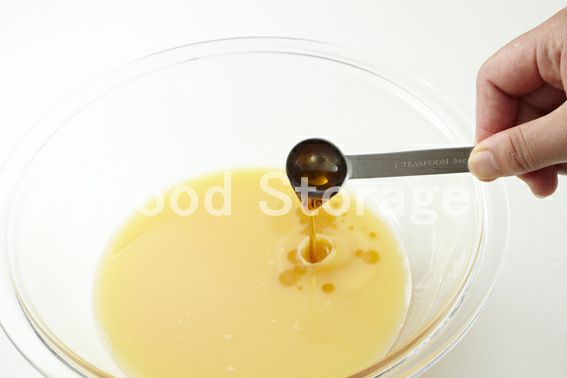 1の蒸し汁と水を合わせて300mlにし、溶き卵、塩、ごま油を加え混ぜてザルでこしてなめらかにし、ひき肉をほぐしながら加えて混ぜる。