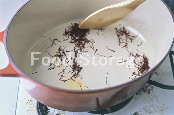 サフランは鍋でから炒りりし、取り出しておく。 |