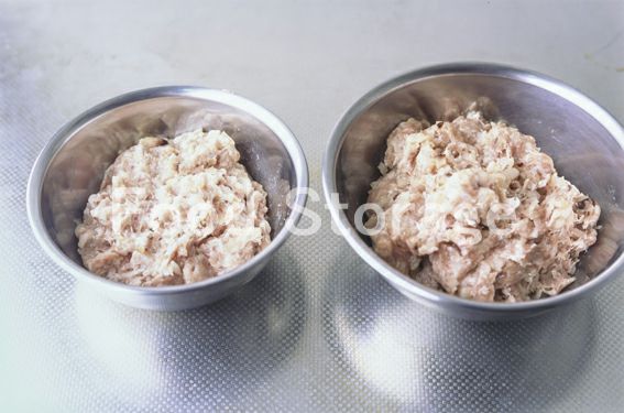ひき肉に干ししいたけ、2、Aを加え粘りが出るまでよく混ぜる。 |