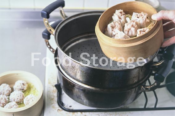 それぞれ白菜を敷いた蒸籠の上に並べて蒸気のあがった蒸し器に入れ、強火で10分程蒸す。 |