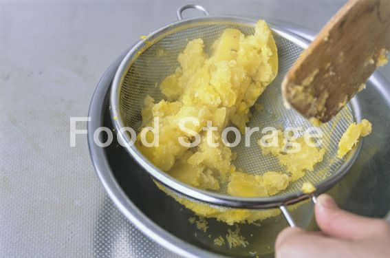 1 さつまいもは輪切りにして皮をむき、水にさらしてザルにあげる。くちなしのみは叩いて割り、ガーゼに包む。鍋に入れ、かぶるくらいの水(分量外)を加え、やわらかくなるまでゆでる。 2 1のくちなしの実を取り除き、ザルにあげて水気をきり、さつまいもが温かいうちに漉し器で漉す。 3 2を鍋に入れ、Aを加えて弱火にかけ、なめらかになるまで木べらでかき混ぜる。栗の甘露煮を加えて混ぜ合わせ、バットなどに移して粗熱を取る。 |