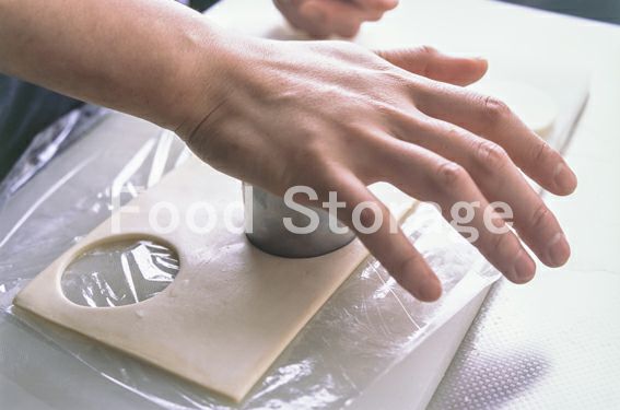 冷凍パイシートは約5cm直径の丸型で8枚分を抜き、フォークで数箇所穴を開ける。