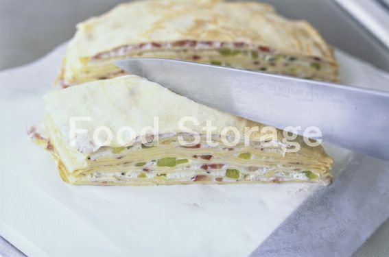 1のクレープを敷き、3を塗り、1のクレープを重ねて4を塗る。この順に交互に数段重ね、ひし形になるように切る。器に盛り、茶こしなどで粉糖をふる。 |