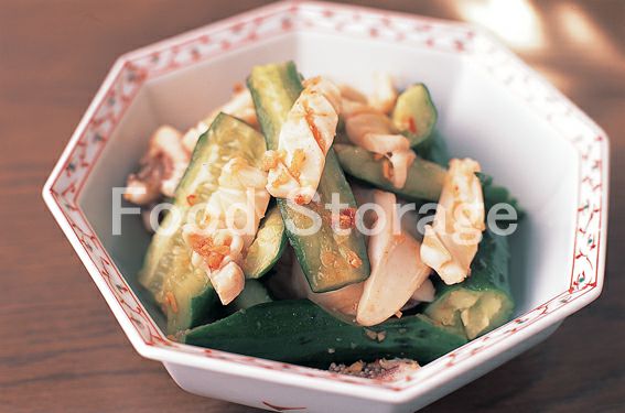 1 するめいかは格子状に切り込みを入れ、ひと口大に切ってゆで、水気をきる。 2 きゅうりは叩いて食べやすい大きさに切り、1、Aを合わせて1時間程漬ける。 |