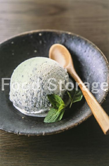 市販のバニラアイスクリーム 黒すりごま ミントの葉