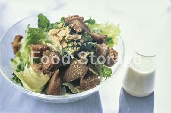 1 テフロン加工のフライパンを熱し、パルメザンチーズをふり入れて弱火でパリパリになるまで焼く。 2 食パンはちぎり、170℃の揚げ油でカラッと揚げる。 3 器にちぎったA、2を盛り、1を割ってのせ、市販のドレッシングをかけていただく。 |