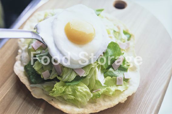 1 ピザ生地は200℃に熱したオーブンで10分焼く。 2 サラダ菜、レタスは食べやすい大きさに手でちぎる。ロースハムは1cm角に切る。 3 フライパンにサラダ油を熱し、卵を割り落として、半熟の目玉焼きを作る。 4 1に2、3をのせ、合わせたAのソースをかけていただく。 |