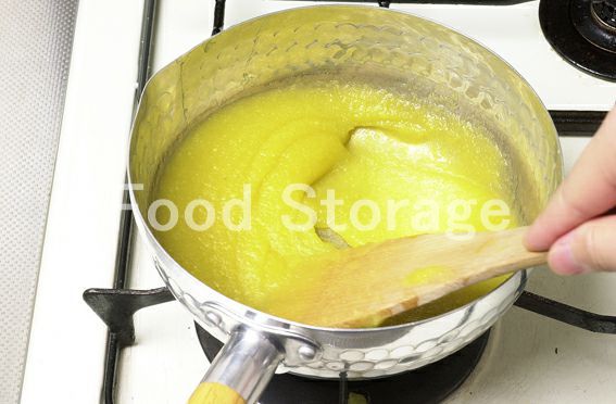 4を鍋に入れ aを加えて弱火にかけ、滑らかになるまで木べらでかき混ぜる。 |
