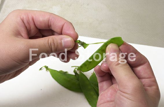 さやえんどうは筋を取り除いて塩ゆでし、水気を切る。 |