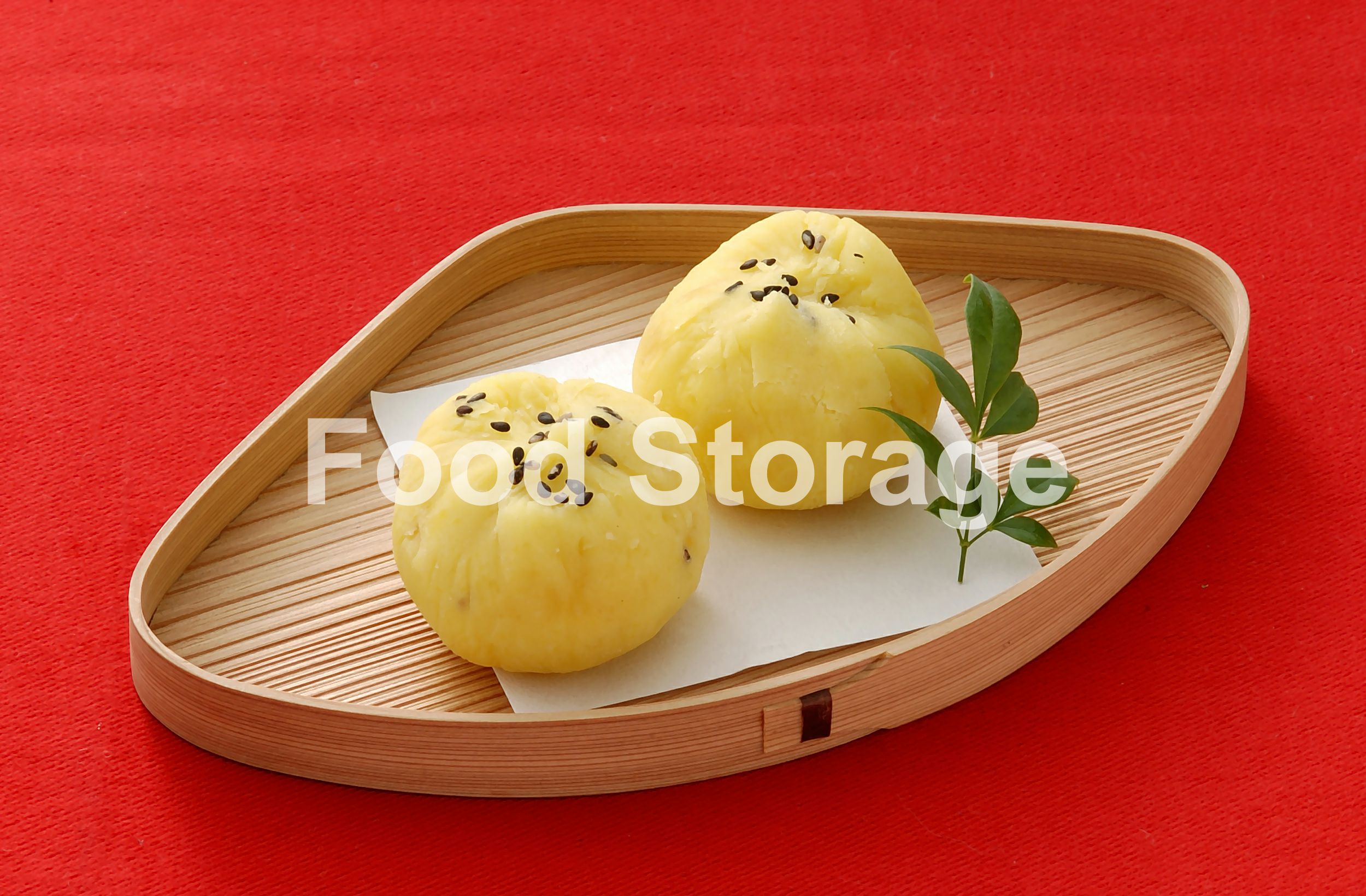 1 栗の甘露煮は汁気をきって、2個は5mm角に切る。 2 さつまいもは皮をむき1cm幅の輪切りにして鍋に入れ、1の残りの栗、くちなしの実、ひたひたの水(分量外)を加えて、柔らかくなるまでゆでてザルにあげ、水気をきる。くちなしの実は取り除く。 3 2を熱いうちに裏ごしし、1の栗、コンデンスミルクを加えて混ぜ合わせ、6等分にしてからラップに包んで成形する。最後に黒ごまを先のほうにつける。 |