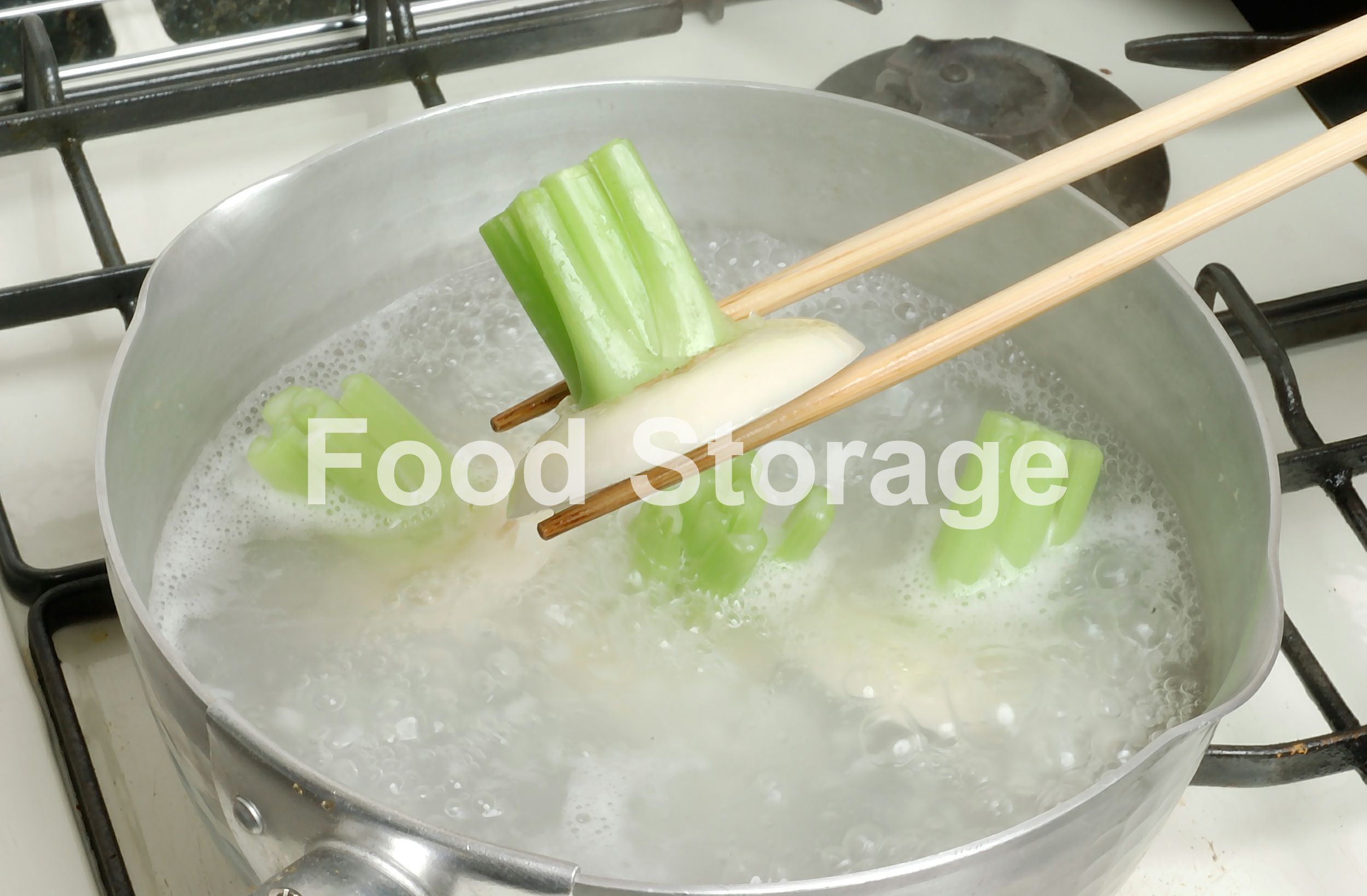 1のゆでたかぶを取りだして塩を加え、1のかぶの上の部分をさっとゆでて、茎の部分の色出しをする。 |