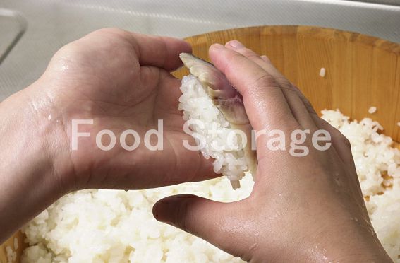 だし昆布は硬く絞った濡れふきんで拭き、バットに入れて2を加え、1のさばの身を下にして漬け、途中何回か返しながら3時間ほど漬けこむ。 |