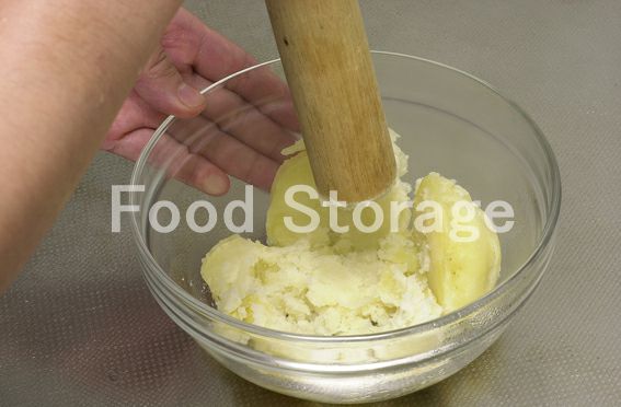 じゃがいもは半分に切ってからクッキングペーパーを敷いた耐熱皿に並べ、ラップをかけて電子レンジ(500W)で5分加熱し、熱いうちに皮をむいてつぶし、粗熱をとる。 |