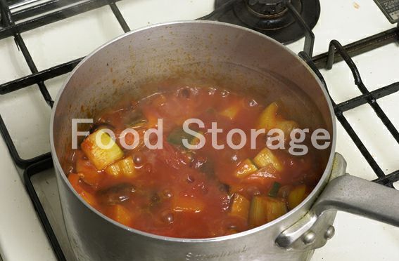 なす・ズッキーニ・長ねぎ にんじん しいたけ 黄パプリカ 緑ピーマン にんにく オリーブ油 a(トマトホール缶 固形ブイヨンの素) b(塩・こしょう・しょうゆ)