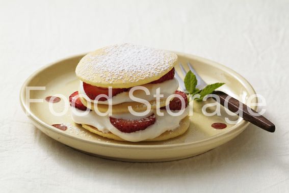 | ふわふわホットケーキに生クリームといちごをサンドして。スポンジを焼かなくてもお手軽に! |