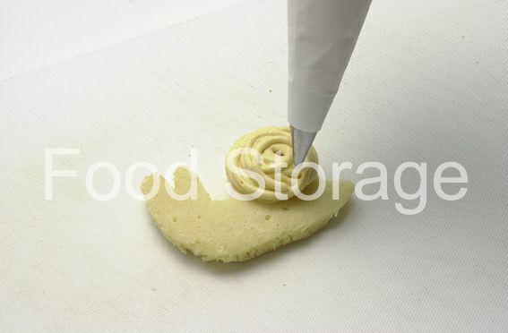 口の小さな金具をつけた絞り出し袋に3のクリームを詰め、1に絞り出し、チョコペンで目と口を描く。 |