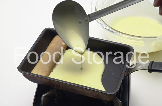 上面がやや乾いてきたら、卵焼きの要領で奥から手前に巻いていく。