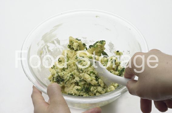 ・にんじん、さつまいもは皮をむいてゆで、裏ごしする。ほうれん草は、ゆでて水けを絞り、細かく刻んでおく。・オーブンを170℃に予熱しておく。