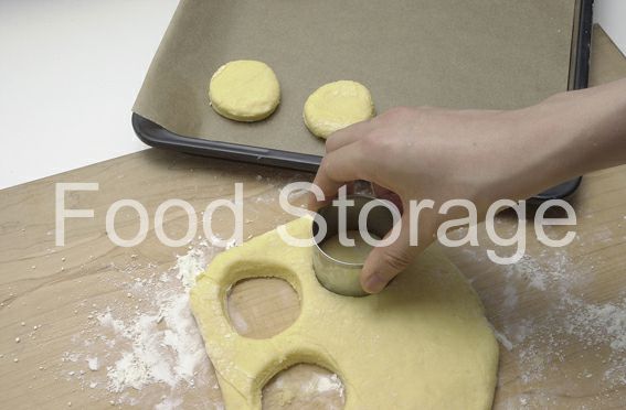 直径4cmの丸型で抜き、クッキングシートを敷いた天板に並べて、190℃のオーブンで15?20分焼く。