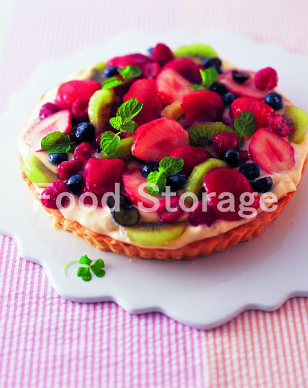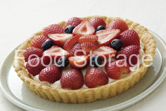 半分に切ったいちご、ブルーベリーを並べて粉砂糖をふるう。 |
