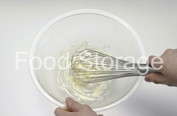 タルト生地を作る。ボウルに室温に戻したバターを入れ、泡だて器でクリーム状になるまで練る。