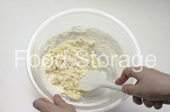 1に溶き卵、ホットケーキミックスの順に加えて混ぜ合わせ粉っぽさがなくなるまで混ぜ合わせる。