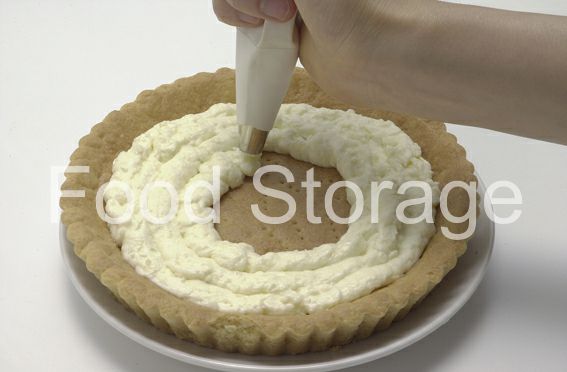 1?の丸い口金をつけた絞り出し袋に7のクリームを入れて5の焼けたタルトに絞り出す。
