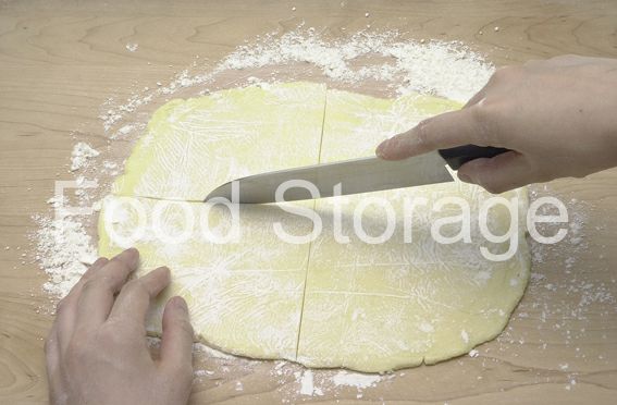 打ち粉をした台に2をのせ、めん棒で4〜5mm厚さにのばし、4等分に切る。