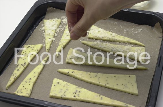 クッキングシートを敷いた天板に2を並べ、粉チーズをふり、190℃のオーブンで12〜15分焼く。 |