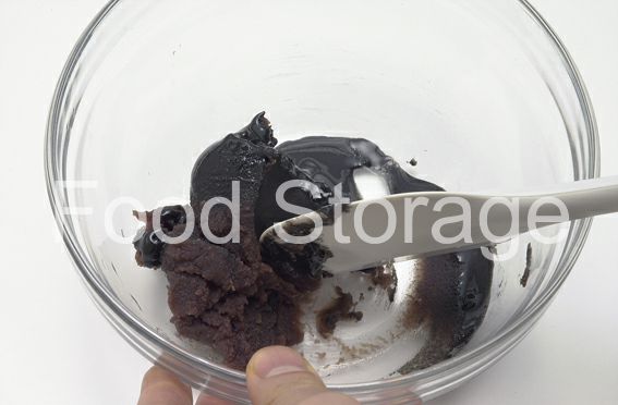 ボウルに練りあん、黒練りごまは混ぜ合わせて16等分に丸める。