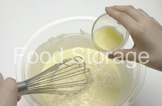 サラダ油と溶かしバターを加え、ムラなく混ぜる。