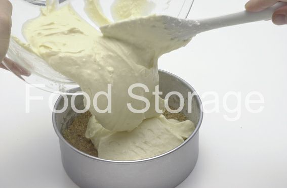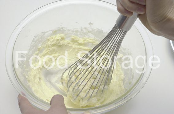 ボウルにクリームチーズを入れてクリーム状にし、砂糖を数回に分けて加える。サワークリーム、生クリーム、溶き卵、レモン汁の順で混ぜていく。