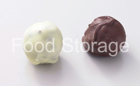 スプーンで2をすくってひと口大に丸め、テンパリングしたスイートチョコレート、ホワイトチョコレートを絡ませてクッキングシートに並べ、冷蔵庫に入れて冷やし固める。 |