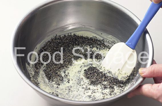 ホワイトチョコレートはテンパリングし、黒すりごまを加えて混ぜ合わせる。クッキングシートを敷いたバットに流し入れ、冷蔵庫で冷やし固める。 |