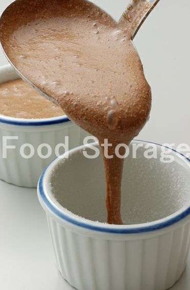 ココットにバター(分量外)を塗り、グラニュー糖(分量外)をまぶして5を流し込んで表面を平らにし、200℃に熱したオーブンで10〜15分焼く。 |