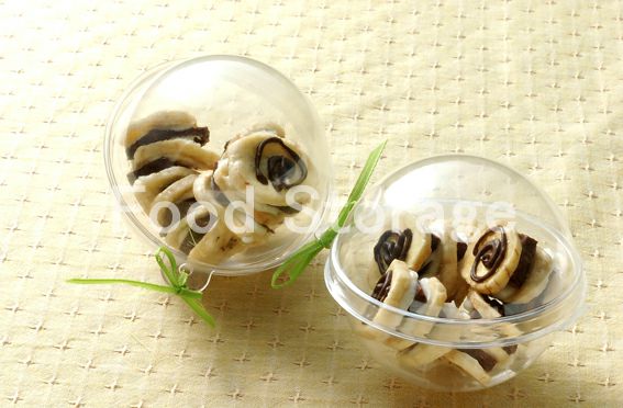 | チョコとバナナは相性抜群!透明の球型ケースに詰めてリボンで結びました。透明の袋に1個ずつ詰めて口を結んでもかわいい。 |