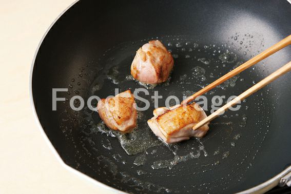 バター半量をフライパンに入れ、鶏肉をこんがりと焼き、取り出しておく。 |