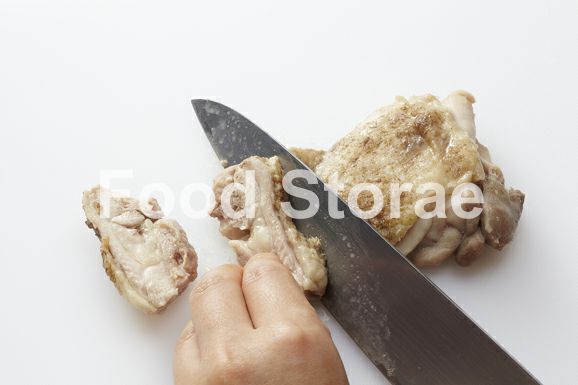 鶏肉を取り出して、食べやすい大きさのそぎ切りにする。万能ねぎは小口切りにしておく。Bを混ぜ合わせてソースにし、ふた付きのカップに入れる。 |