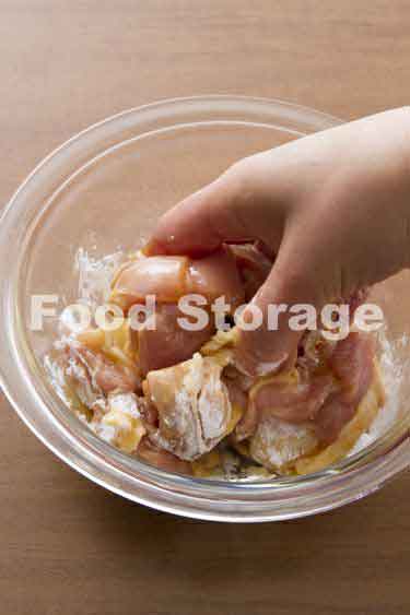 鶏肉は余分な脂を除いて2cm角に切り、Aをからめて10分程度おき、片栗粉をしっかりともみ込む。