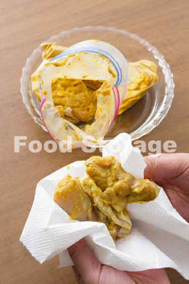 鶏肉はひと口大に切る。保存袋にAを合わせて鶏肉を加え、袋の上からよくもみ、冷蔵庫で3時間程度漬ける。