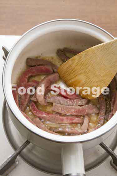鍋にごま油とにんにくを入れて弱火にかけ、香が立ったら牛肉を加えて中火でほぐしながら炒め、Aと豆もやしを加える。