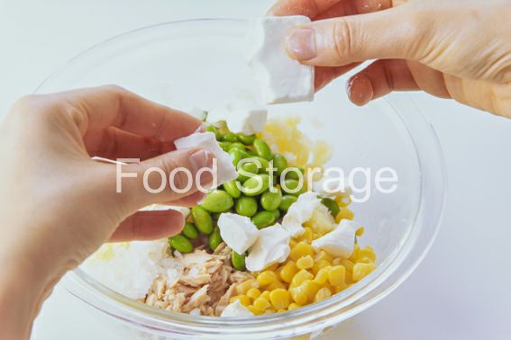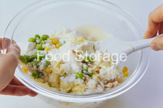 じゃがいも 玉ねぎ ツナ(缶詰) ゆで枝豆(さやなし) ホールコーン クリームチーズ A(マヨネーズ 牛乳 塩、こしょう)