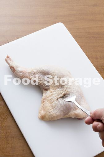 鶏肉は余分な脂身を取り除き、皮目をフォークで数か所刺して塩少々(分量外)を両面にまんべんなくふる。