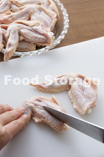 手羽先は骨にそって切り込みを入れ、 塩、こしょうをふり、片栗粉をまぶす。