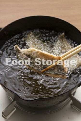 1の水けをペーパータオルでよくふき、片栗粉をまんべんなくまぶし、170℃に熱した揚げ油でカラッと揚げる。