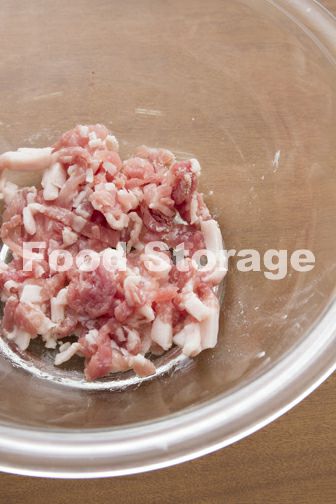 鍋に1のしいたけ、もどし汁、4を入れて強火にかけ、煮立ったら2の豚肉をほぐしながら入れて中火で肉の色が変わるまで煮て、3とBを加えて再度煮立たせる。