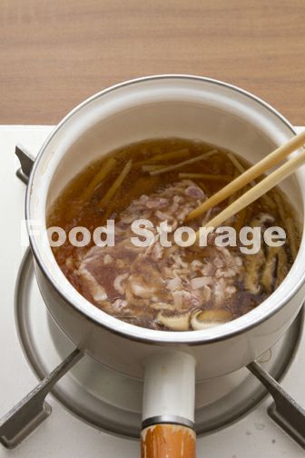 干ししいたけは分量の水でもどして薄切りにする。もどし汁はとっておく。