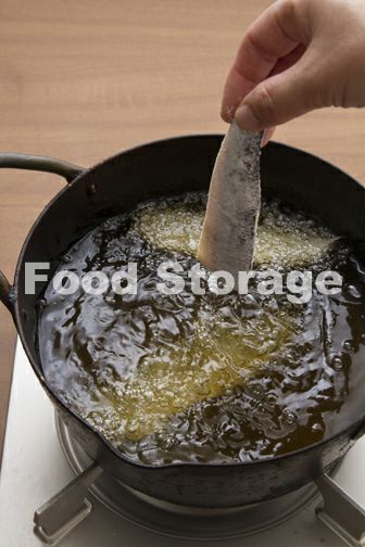 1の水けをふいて小麦粉を薄くまぶし、170℃に熱した揚げ油でカラッと揚げる。
