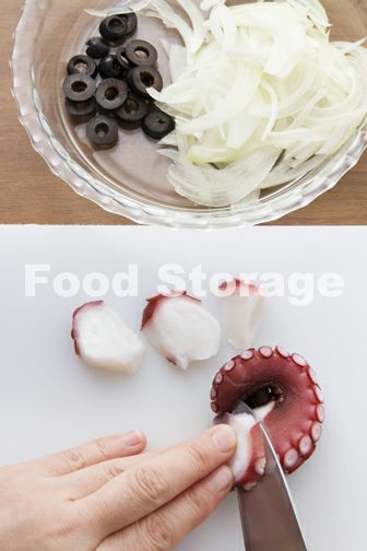 ゆでだこは5㎜幅のそぎ切りにする。玉ねぎは薄切りにする。黒オリーブは小口切りにする。