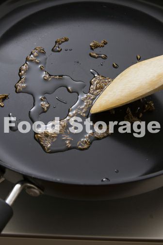 フライパンにサラダ油を熱し、クミンシードを入れて弱火で香りが立つまで炒める。